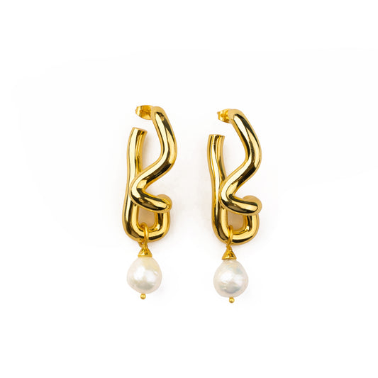Freeform Pearl Drop Gold Hoops