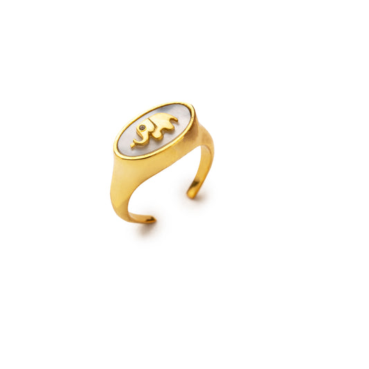Hamsa Studded Signet Ring - Black Mother of Pearl
