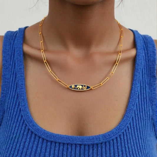 Channel good fortune and timeless elegance with our Sage Collection. This exquisite collection features a luminous Blue Lapis Lazuli Stone and Black Mother of Pearl, accented by three powerful symbols of luck: the elephant, representing strength and wisdom, the clover, a classic emblem of good fortune, and the horseshoe, known to ward off negativity and invite positivity.
