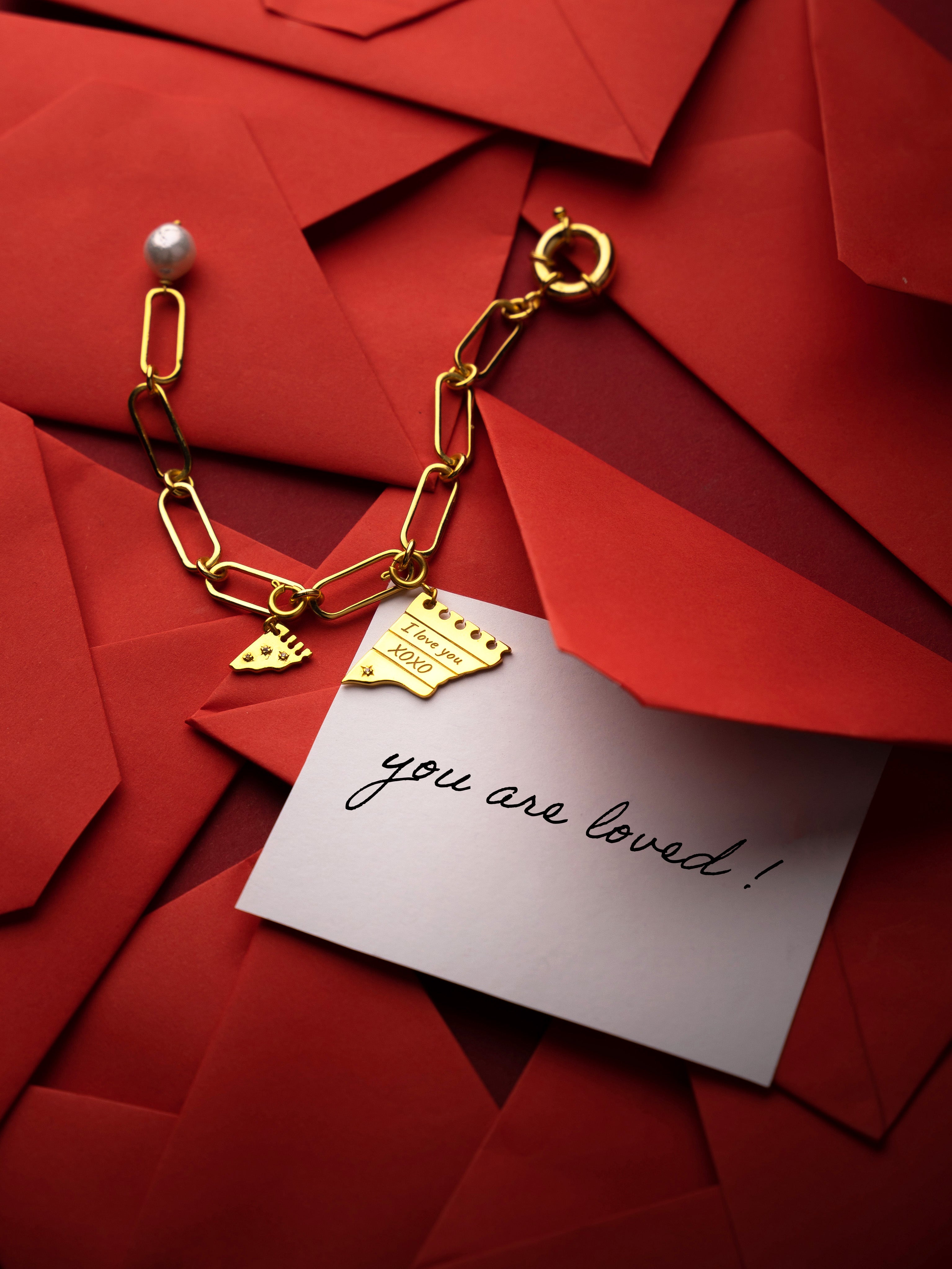 I Love You Mini Paper clip Diary Note Charm Bracelet