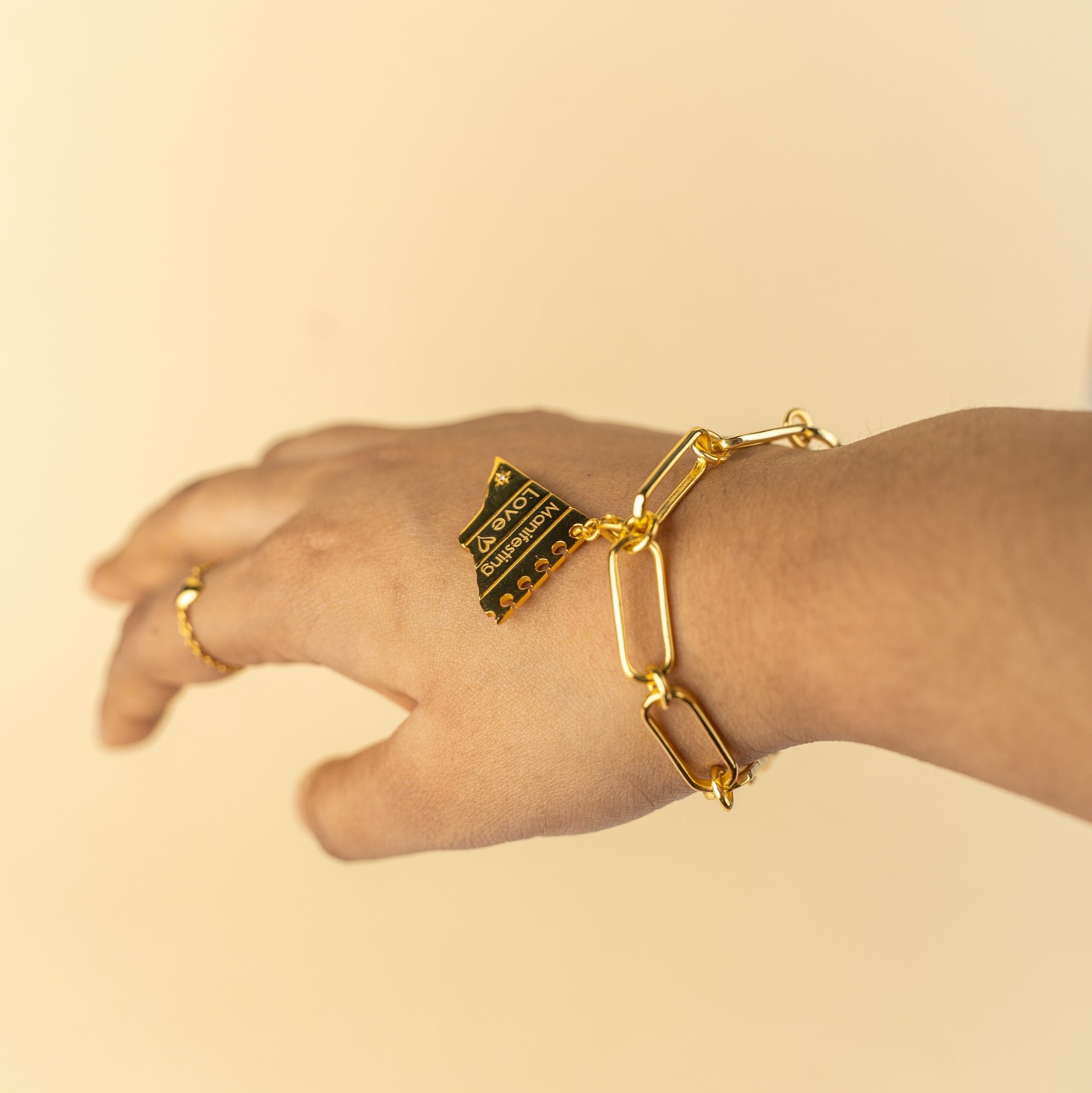 Handcrafted in 18k gold plated brass I Love you note charm is a wonderful way to wear your thoughts all along.