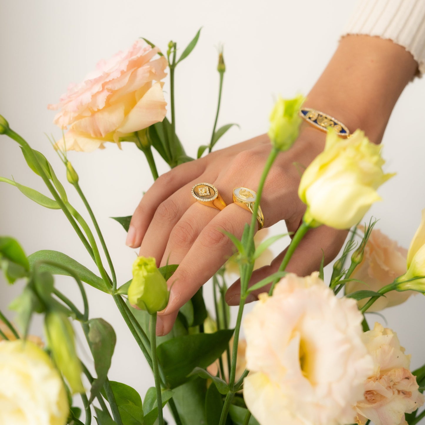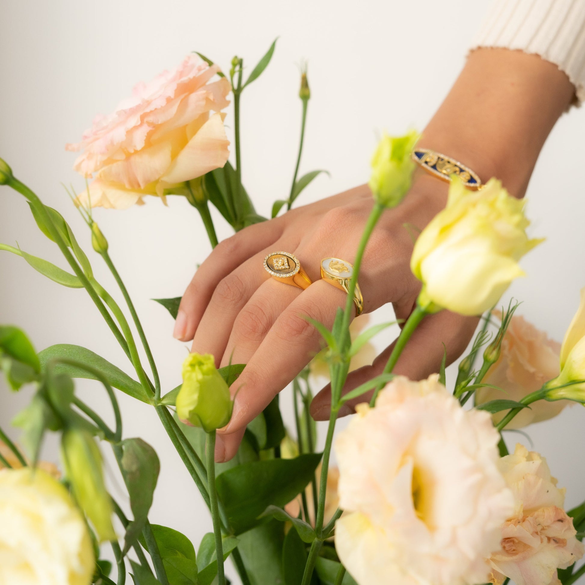Meticulously crafted and thoughtfully designed this series is a conversation starter. Words inlayed on Handpicked semi-precious stones is the perfect piece to own or to gift your close ones to remind their precious thoughts to hold on.
