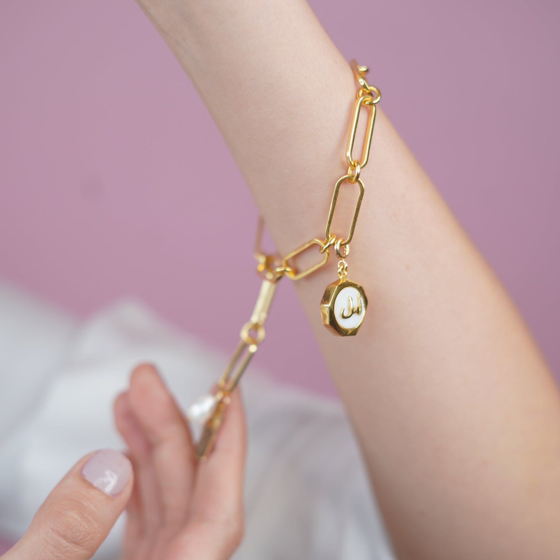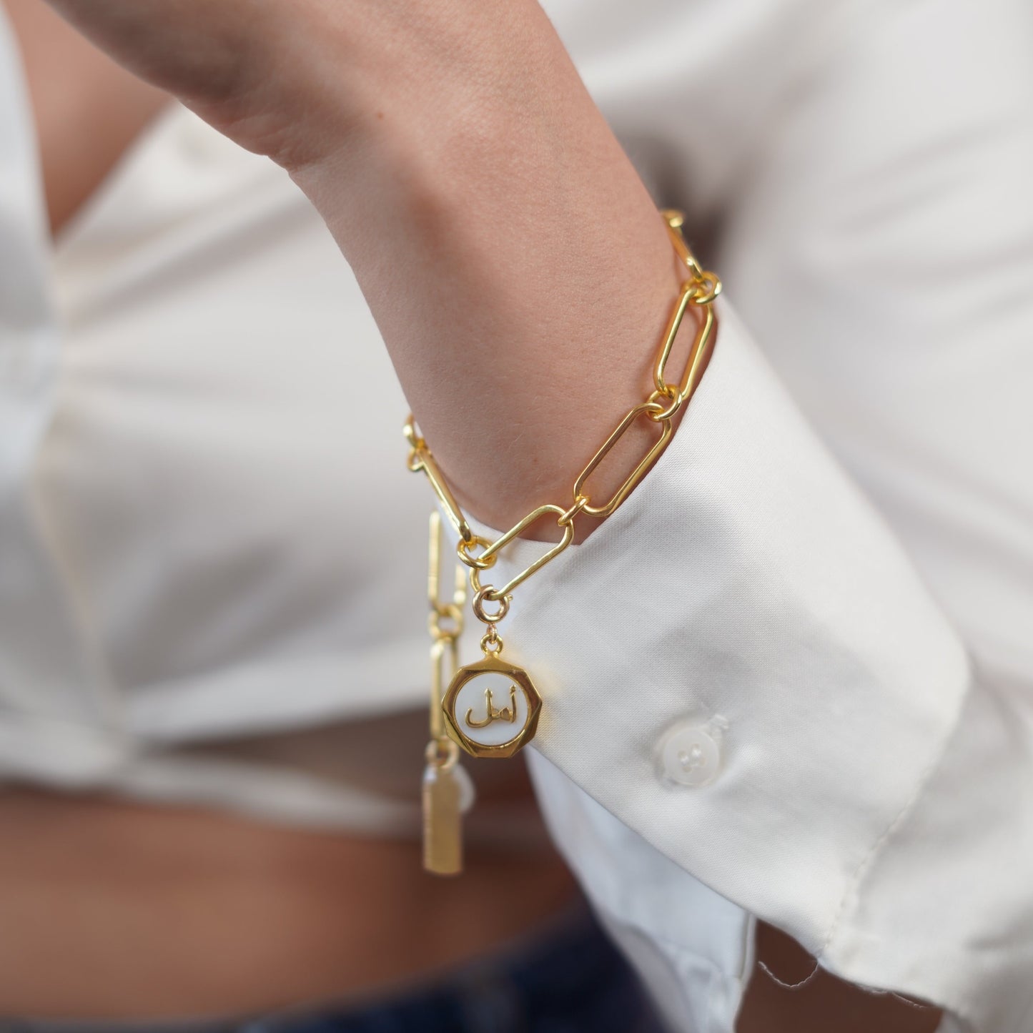 Handcrafted in 18k gold plated brass this Faith (Imaan) Arabic Scripture Charm is a chance to express who you are and to hold on to precious thoughts. This Charm is all about giving one a positive or optimistic attitude about all the events in one's day to day life.