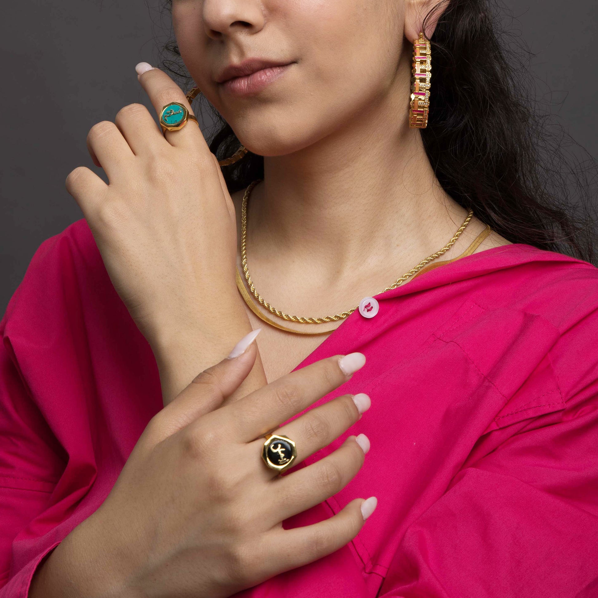 Handcrafted in 18k gold plated brass this Faith (Imaan) Arabic Scripture Ring is a chance to express who you are and to hold on to precious thoughts. This Ring is all about giving one a positive or optimistic attitude about all the events in one's day to day life.