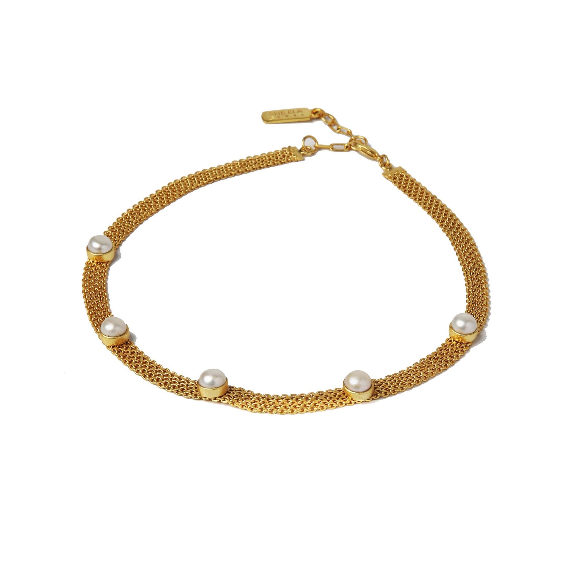 Punctuated with pearls, this necklace is handcrafted 18K gold-plated metal. Wear it solo or stack it with charm necklaces – the choice is yours.