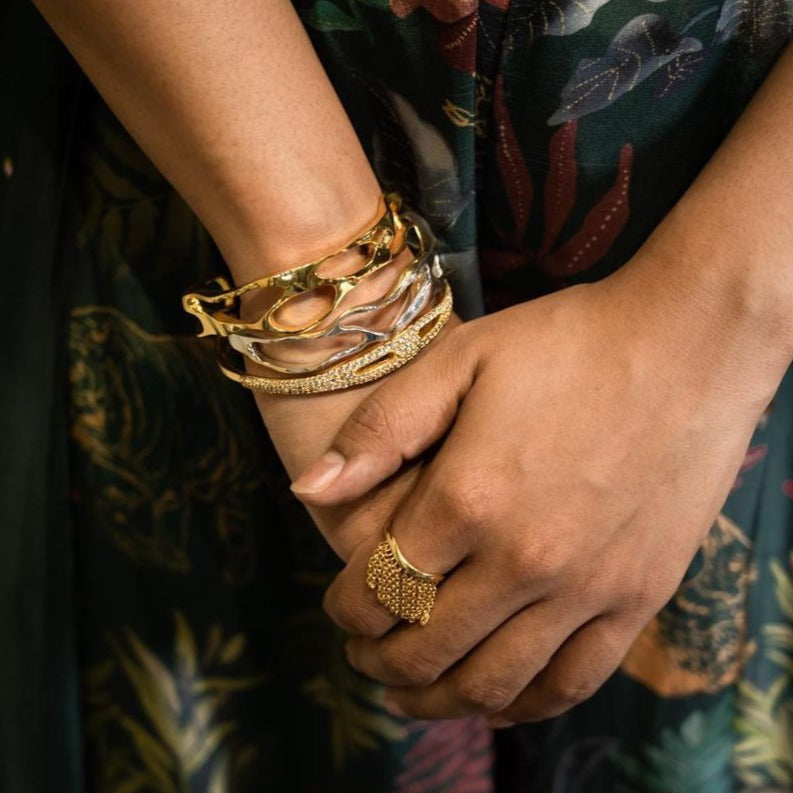 Make an elegant, sculptural statement in these eye-catching Bangle with beautiful hand-carved details. Beautiful when stacked.