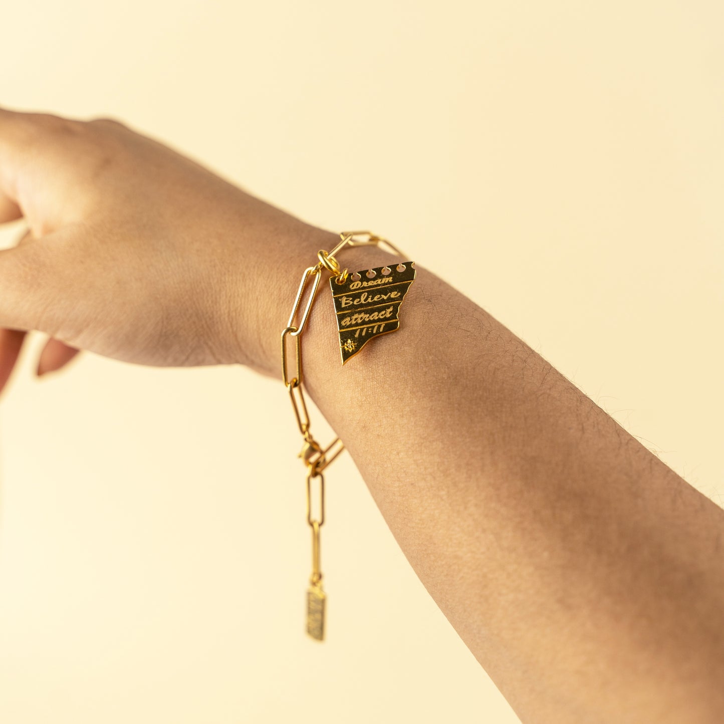 Designed for the everyday, we focused on creating a range of staples made from materials of the very highest quality plated with 18k Gold. Wear it Solo or build your own bracelet by adding Charms from our Charms collection.