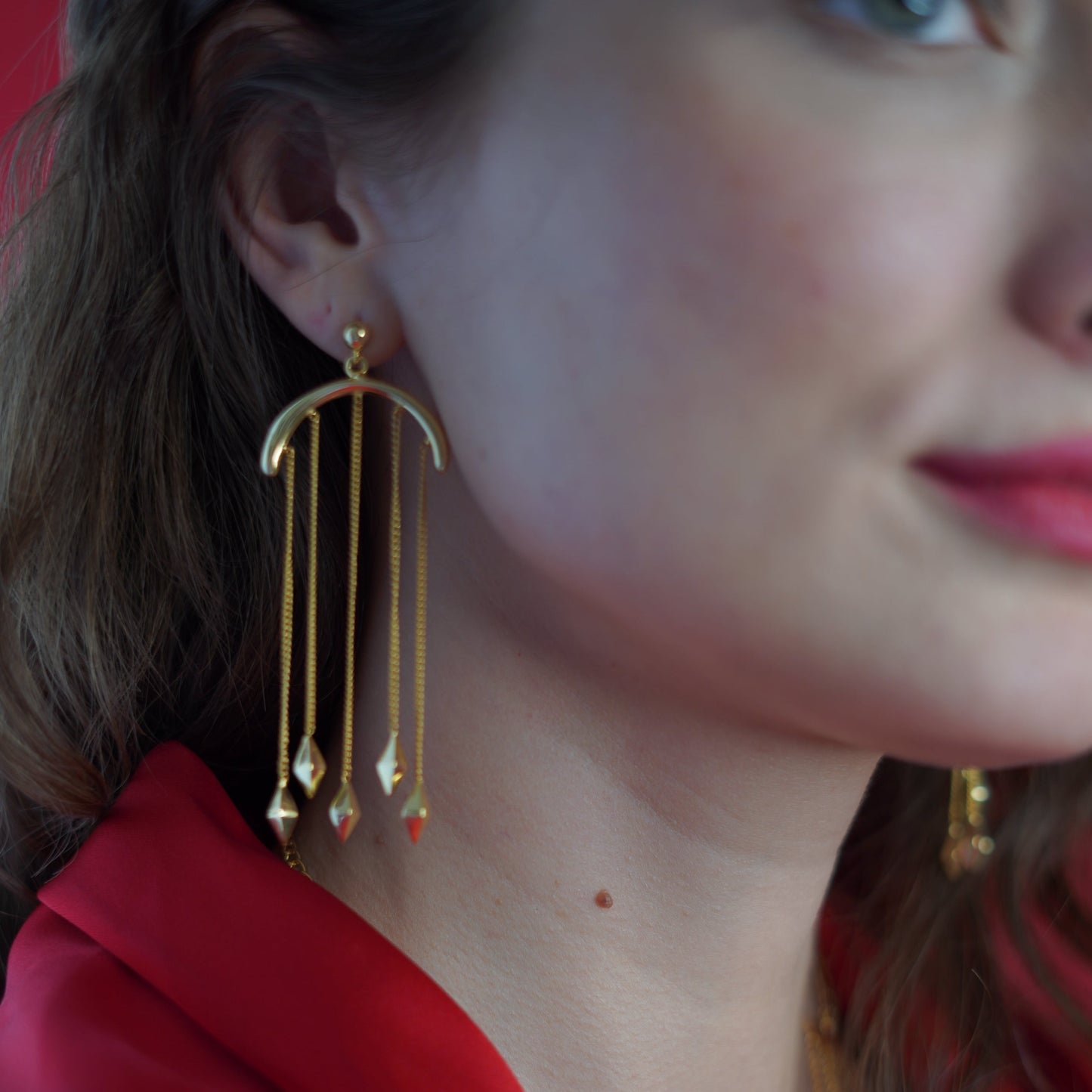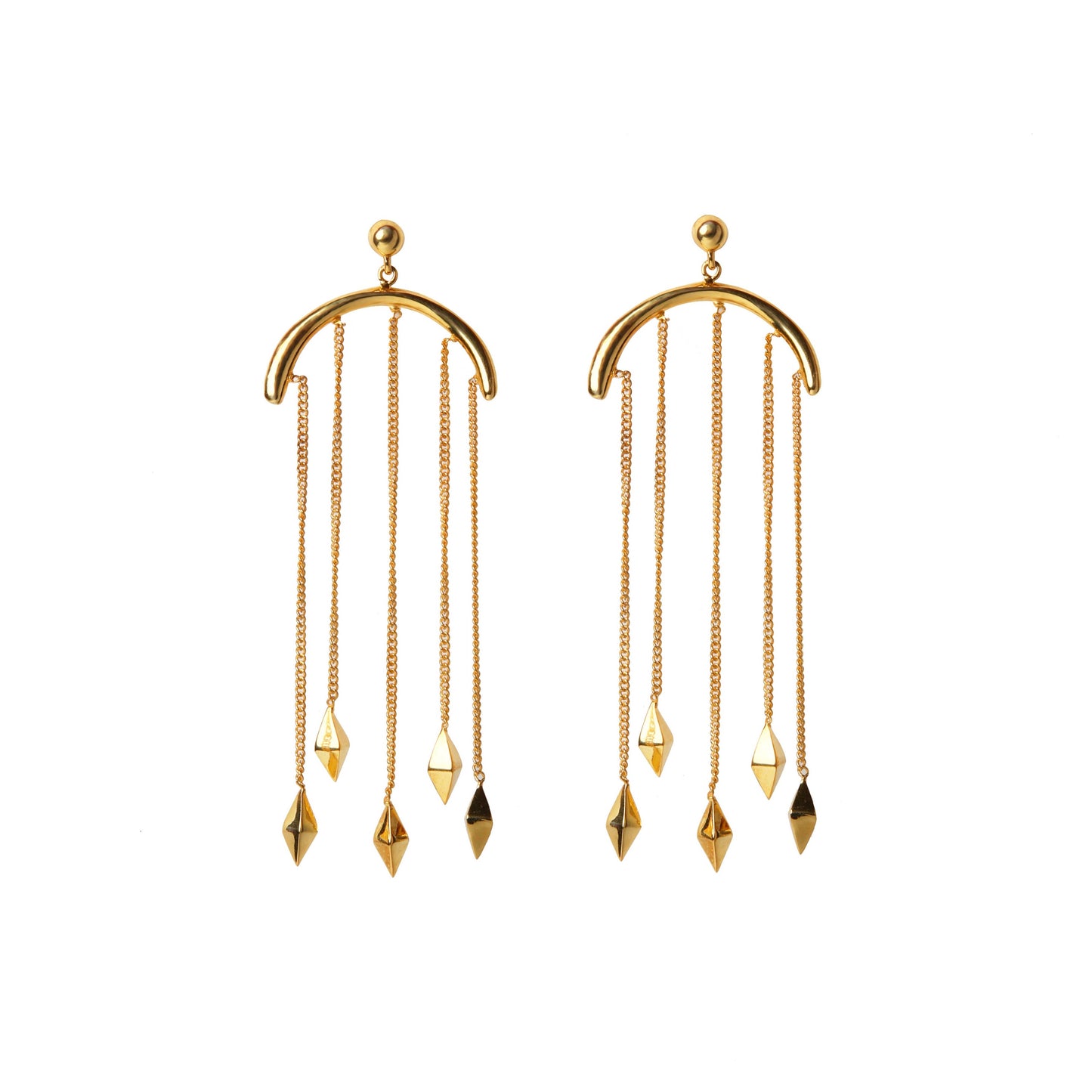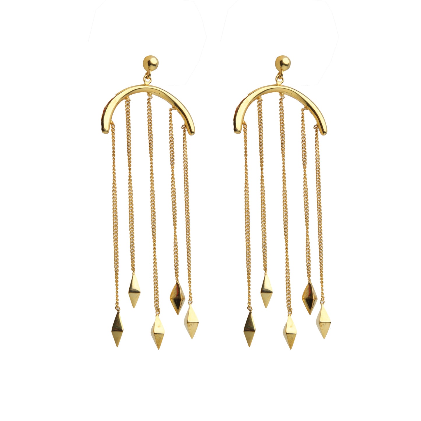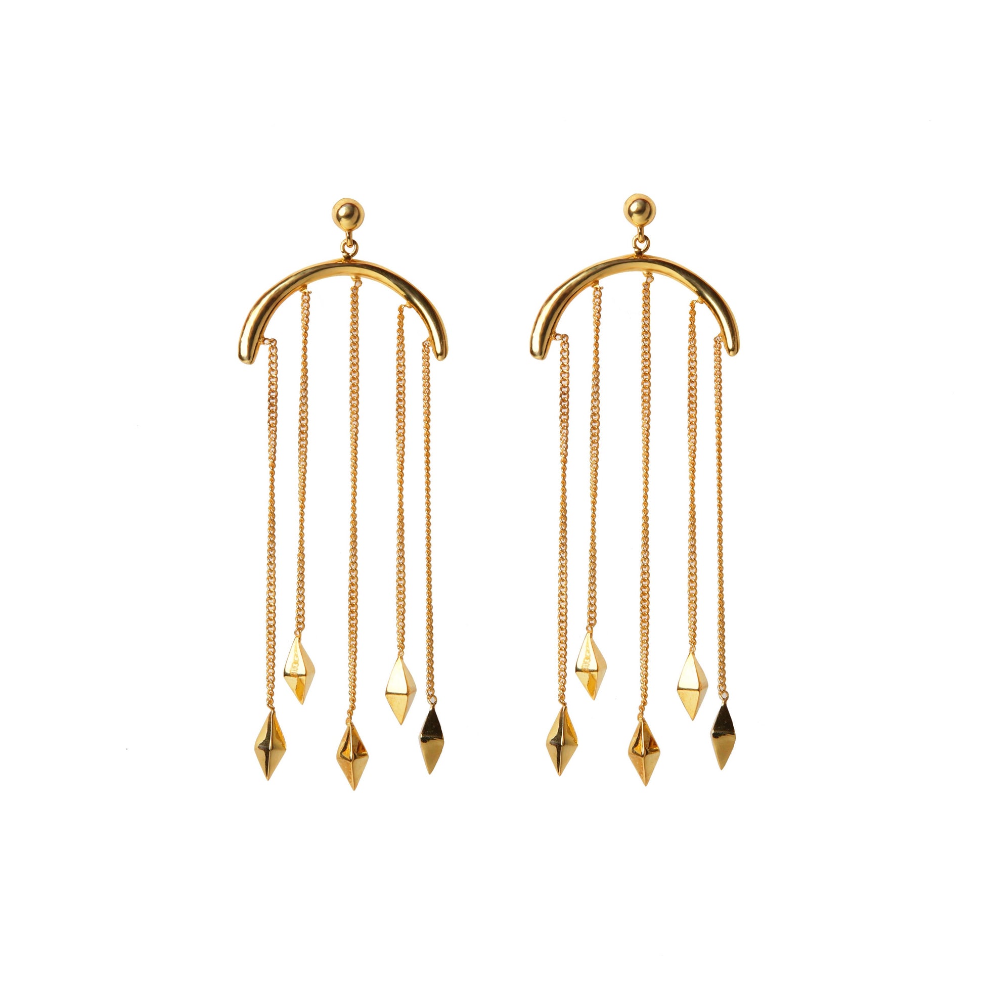 Tiny studs and chains of spike fringe, these drop earrings will lengthen your neck and add a touch of elegance.